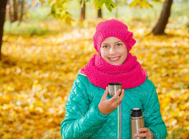 Милая девочка с осенними листьями
