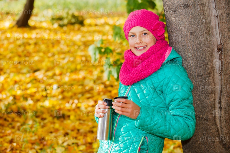 Милая девочка с осенними листьями