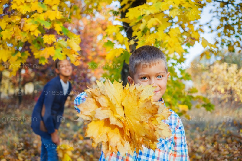 Дети с осенними листьями