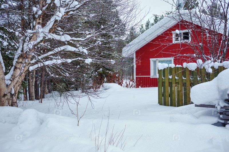 Красный деревянный финский дом