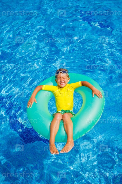 Мальчик купается в бассейне