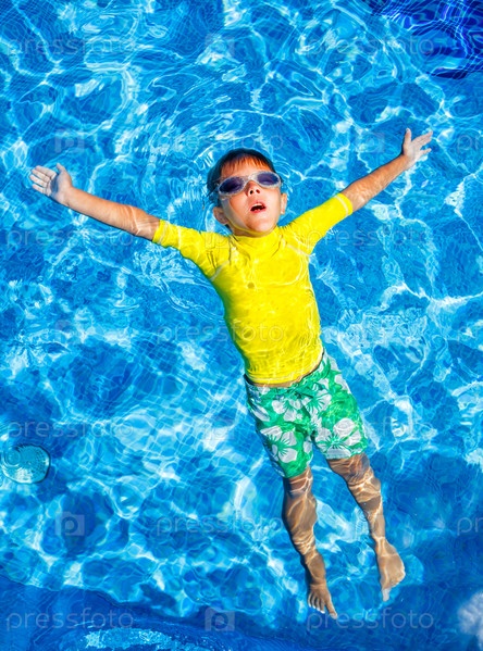 Мальчик купается в бассейне