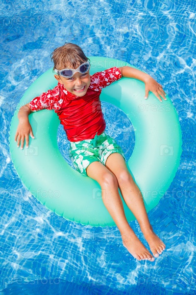 Мальчик купается в бассейне