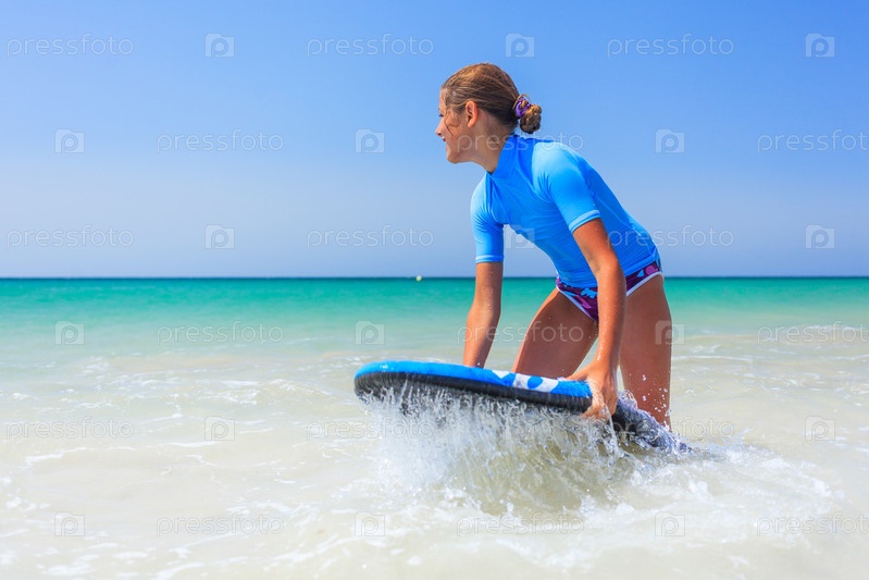 Девочка занимается серфингом