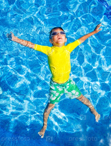 Мальчик купается в бассейне