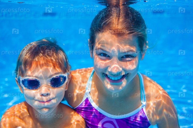 Дети плавают под водой