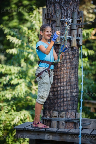 Девочка в веревочном парке