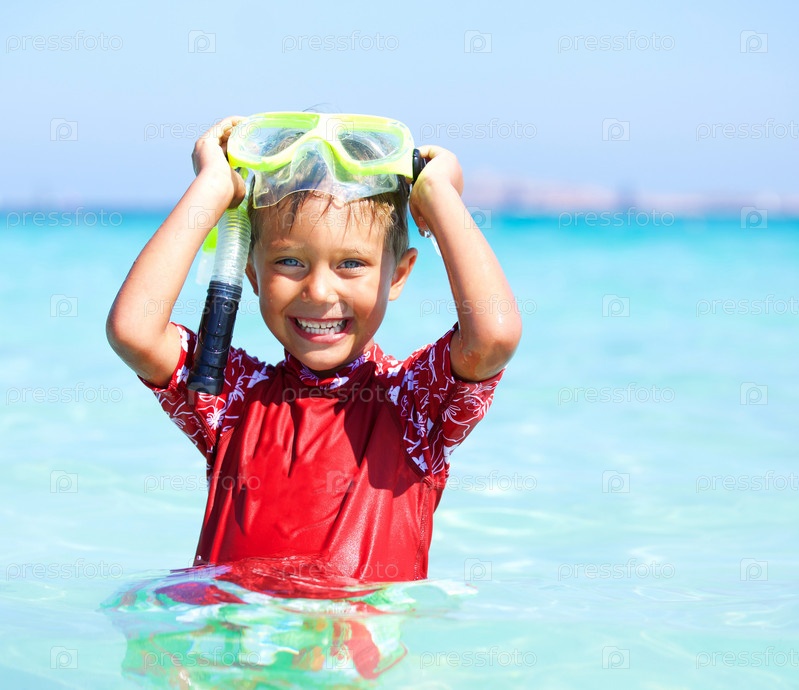 Мальчик занимается подводным плаванием