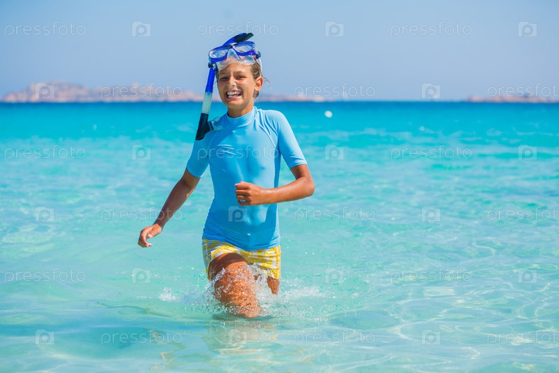 Девочка занимается подводным плаванием