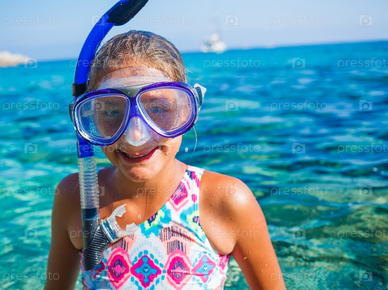 Девочка занимается подводным плаванием