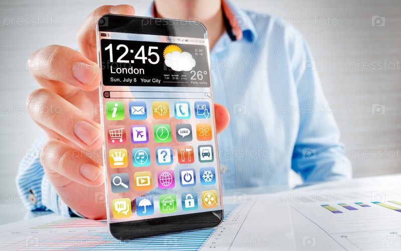 Смартфон с прозрачным экраном в человеческих руках