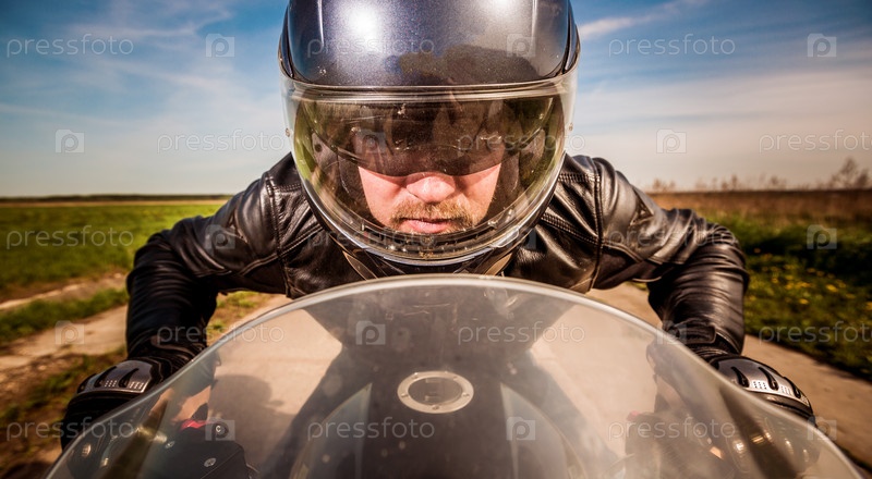 Мотоциклист едет по дороге