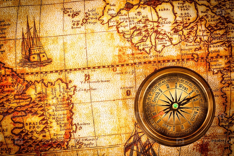 Компас на древней карте мира