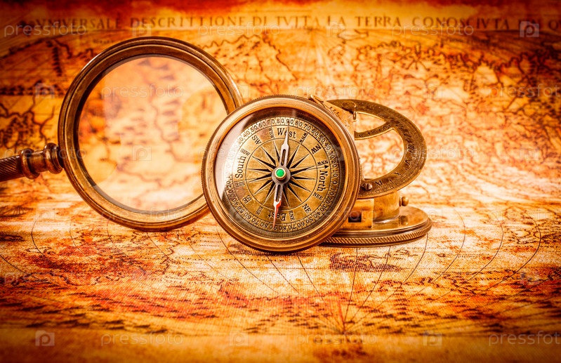 Увеличительное стекло на древней карте
