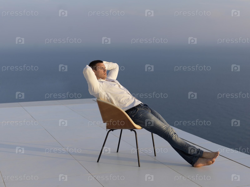 Расслабленный молодой человек на балконе дома