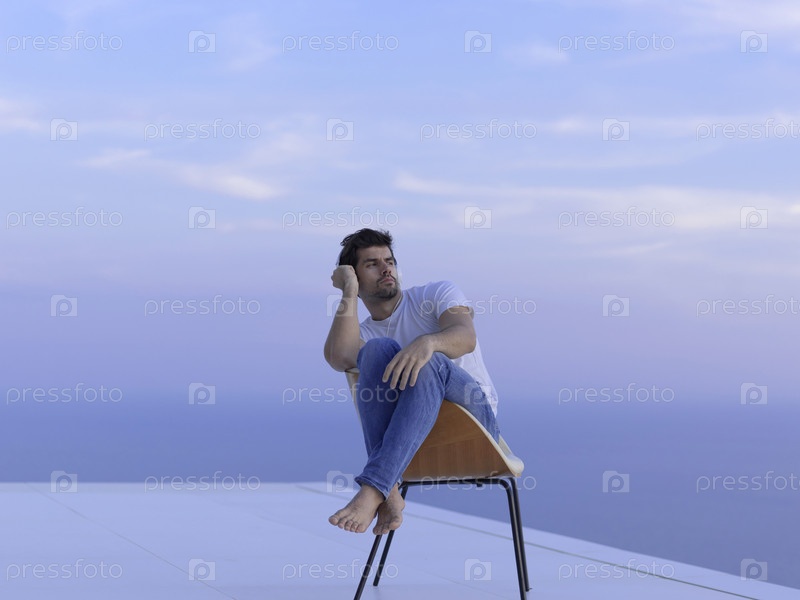 Расслабленный молодой человек на балконе дома
