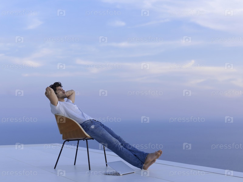 Расслабленный молодой человек на балконе дома