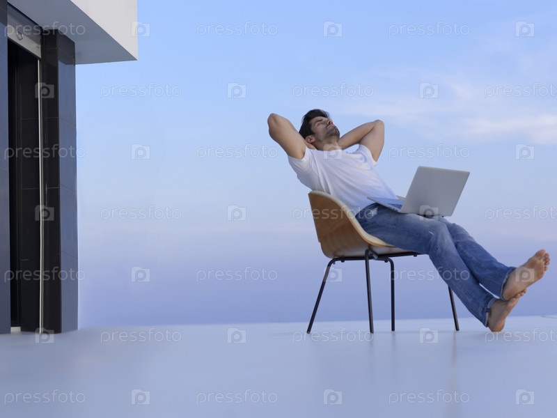 Расслабленный молодой человек на балконе дома