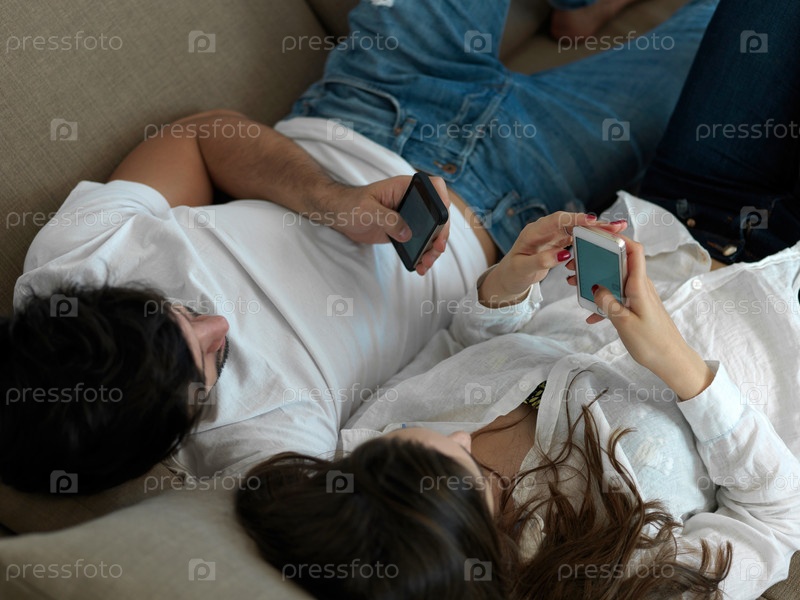 Молодая пара фотографируется дома