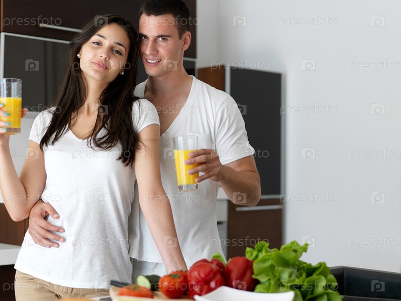 Счастливая молодая пара в кухне