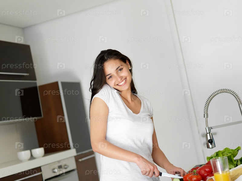 Молодая женщина готовит на кухне