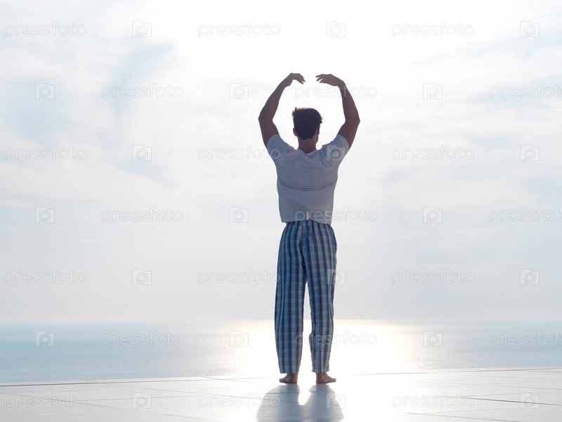 Молодой человек занимается йогой