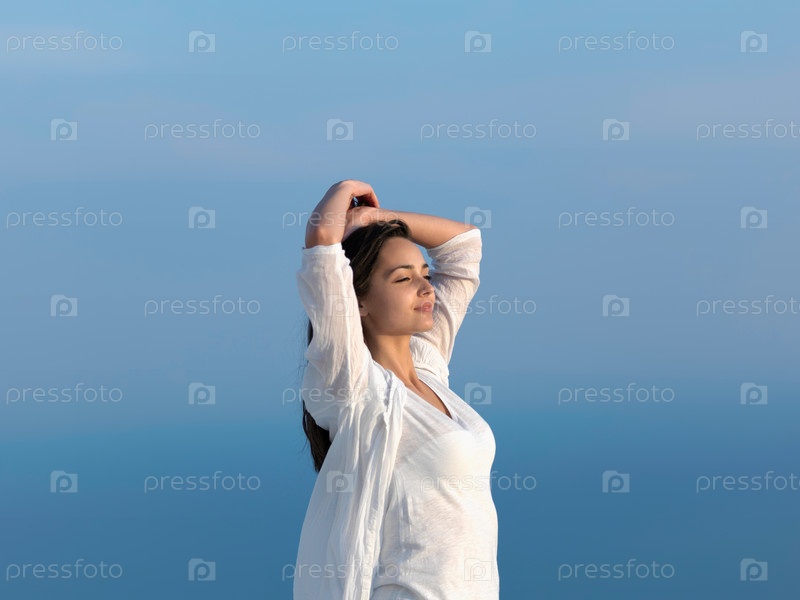 Молодая женщина любуется закатом