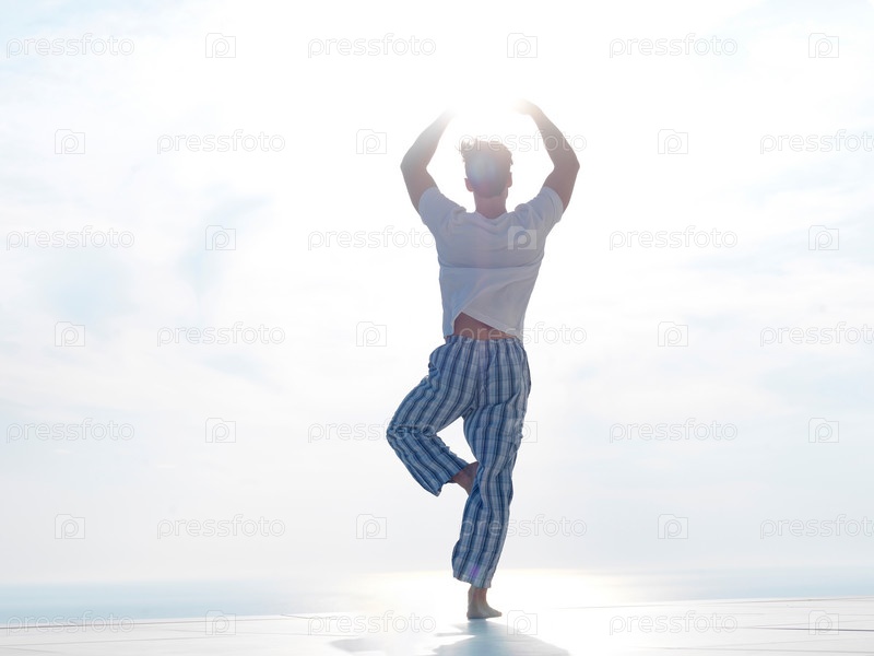 Молодой человек занимается йогой