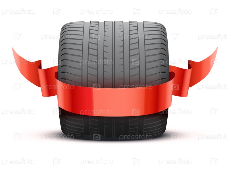 Колесо спортивного автомобиля и лента победителя