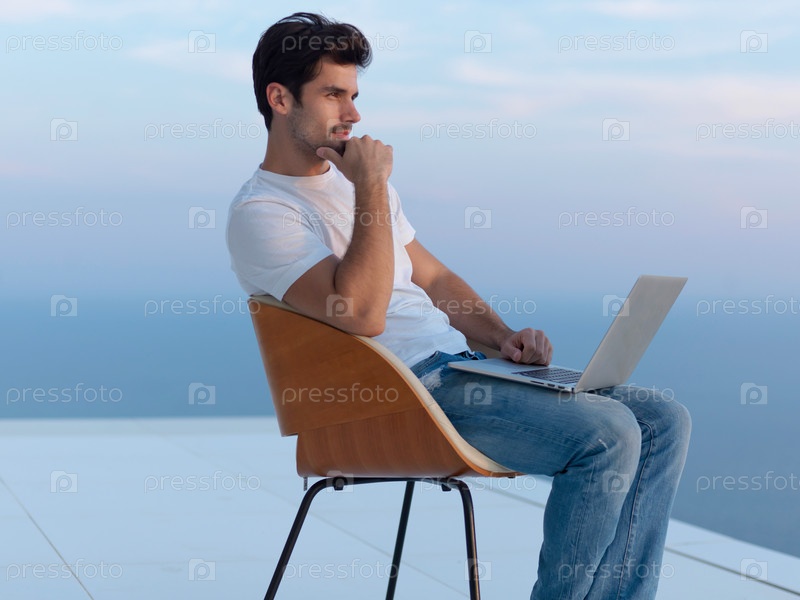 Расслабленный молодой человек на балконе дома
