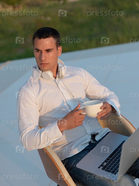 Расслабленный молодой человек на балконе дома