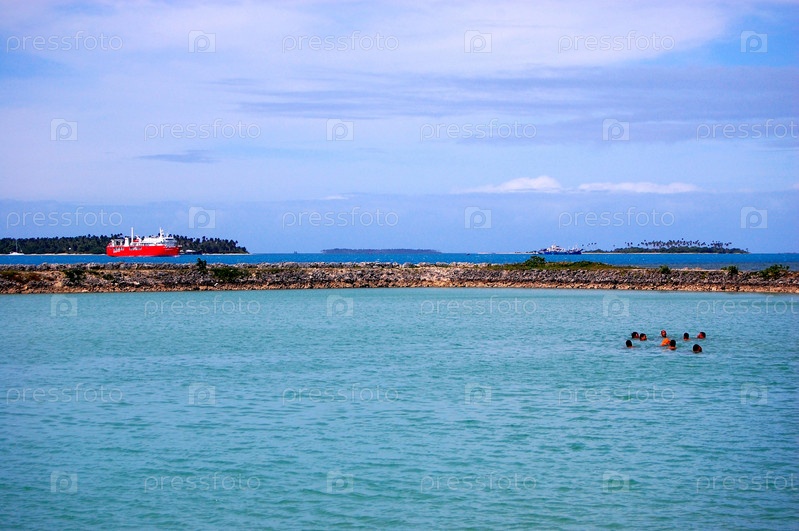 Люди плавают вблизи порта, Тонга