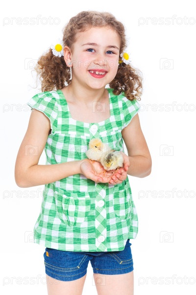 Счастливая девочка с цыплятами