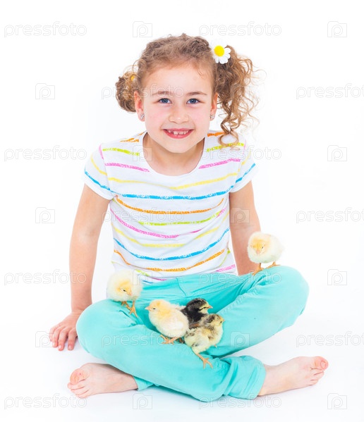 Счастливая девочка с цыплятами