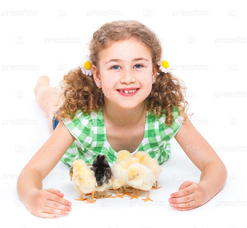 Счастливая девочка с цыплятами