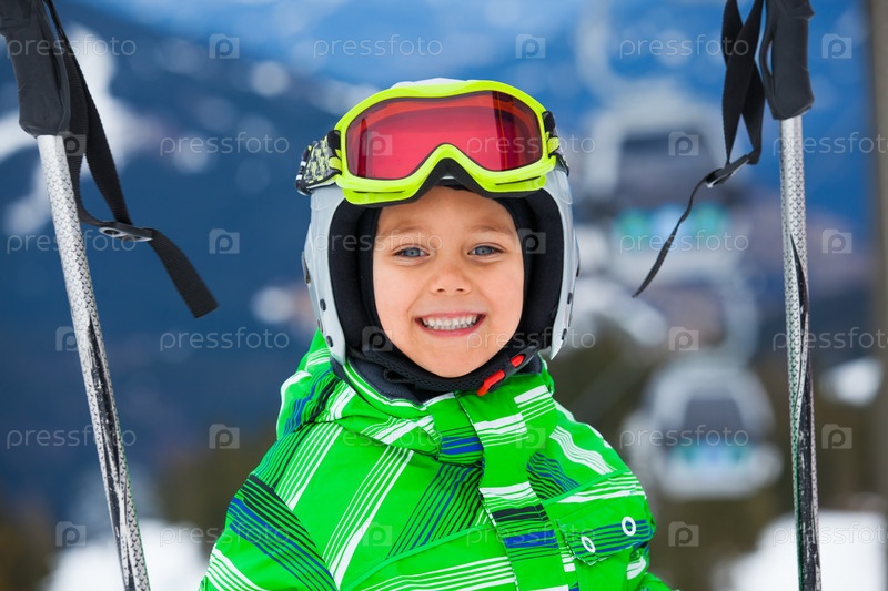 Счастливый мальчик на лыжах
