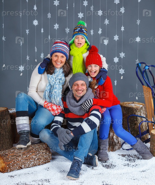 Счастливая семья в зимней одежде