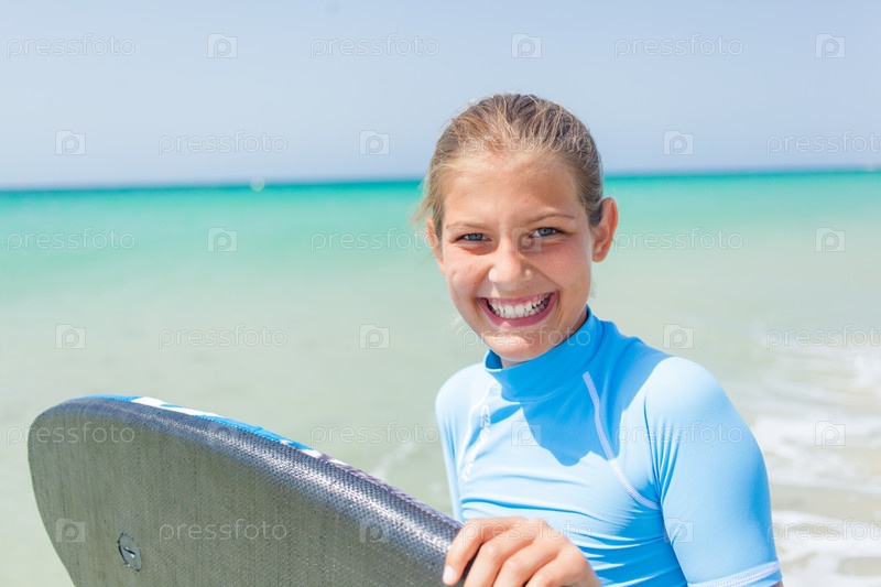 Девочка-подросток занимается серфингом