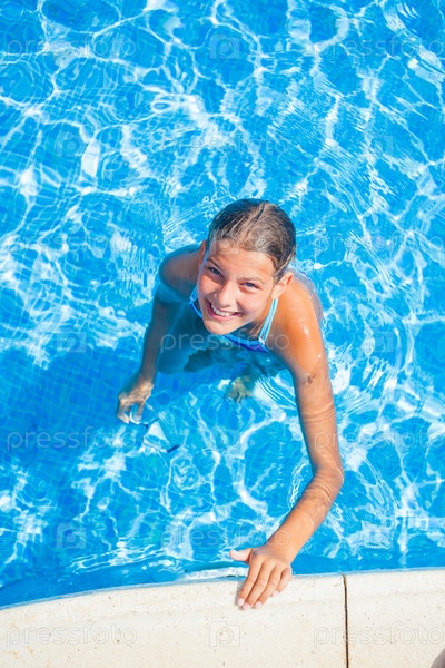 Счастливая девочка в бассейне
