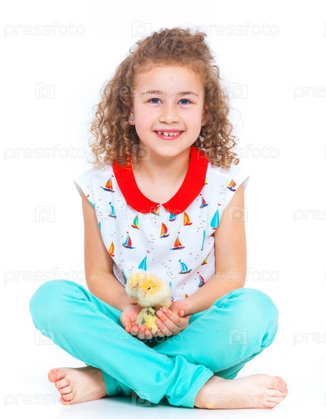 Счастливая девочка с цыплятами