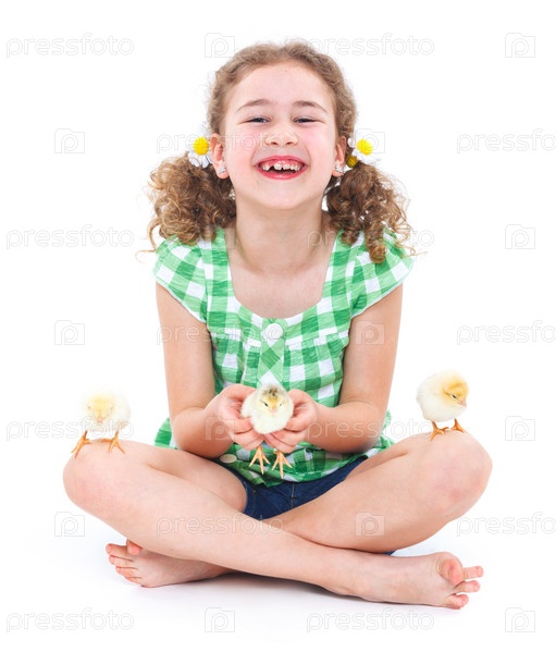 Счастливая девочка с цыплятами