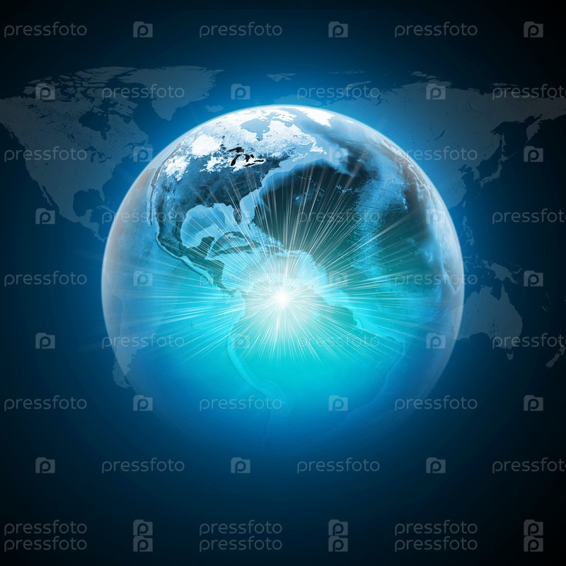 Земля со лучами света карта мира
