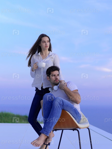 Расслабленная молодая пара дома