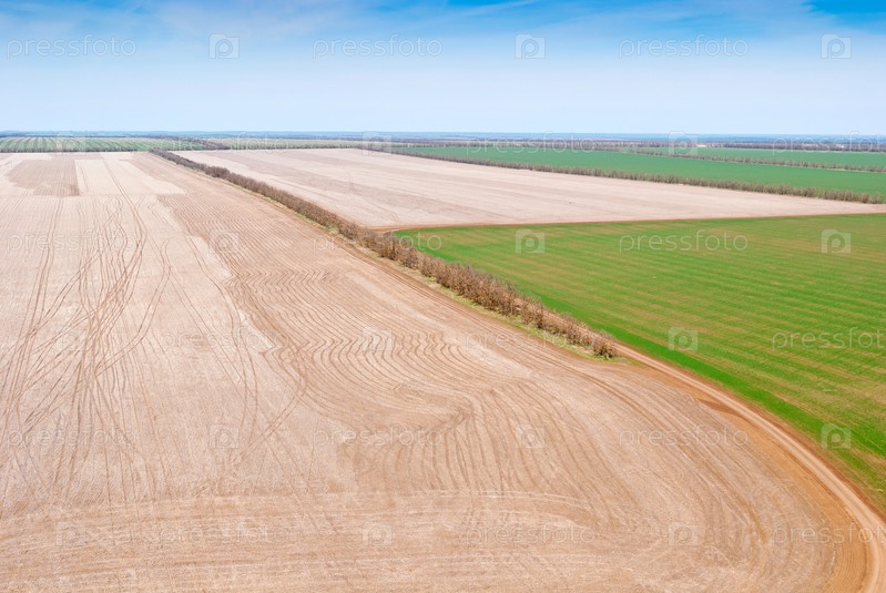 Красивый сельский пейзаж весной, вид с высоты