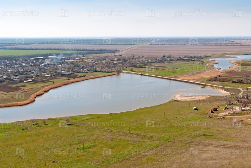 Красивый сельский пейзаж весной, вид с высоты
