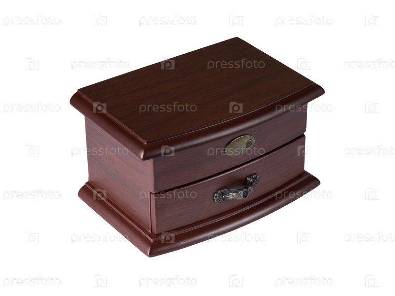 Маленькая деревянная шкатулка на белом фоне