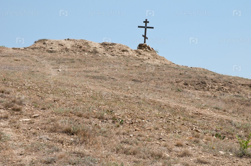 Деревянный крест на холме