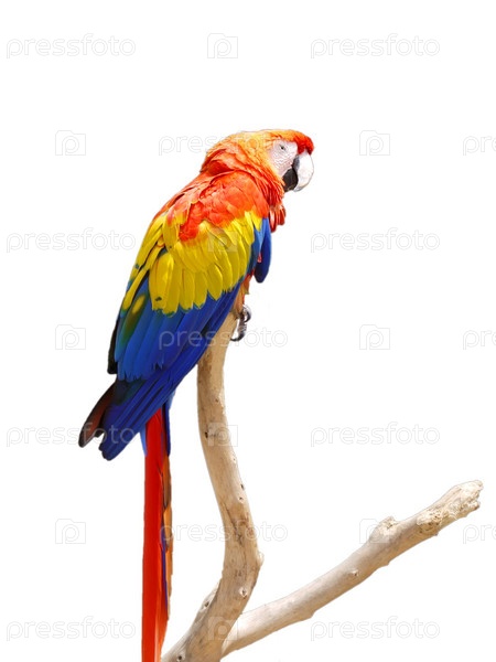 Красочный попугай на ветке дерева