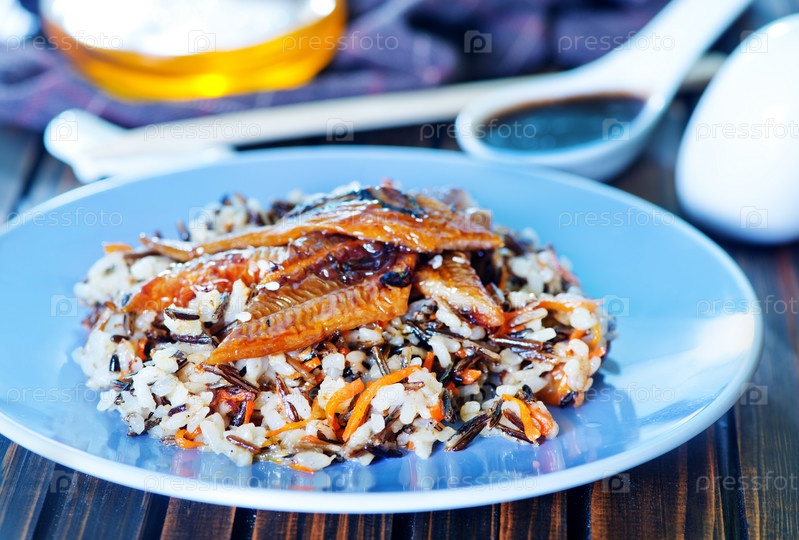 Жареный угорь с рисом