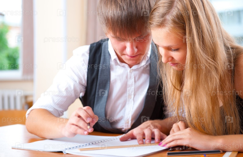 Двое студентов с инструментами для черчения